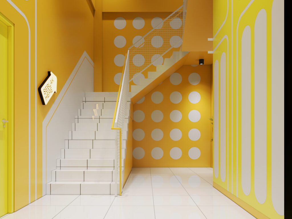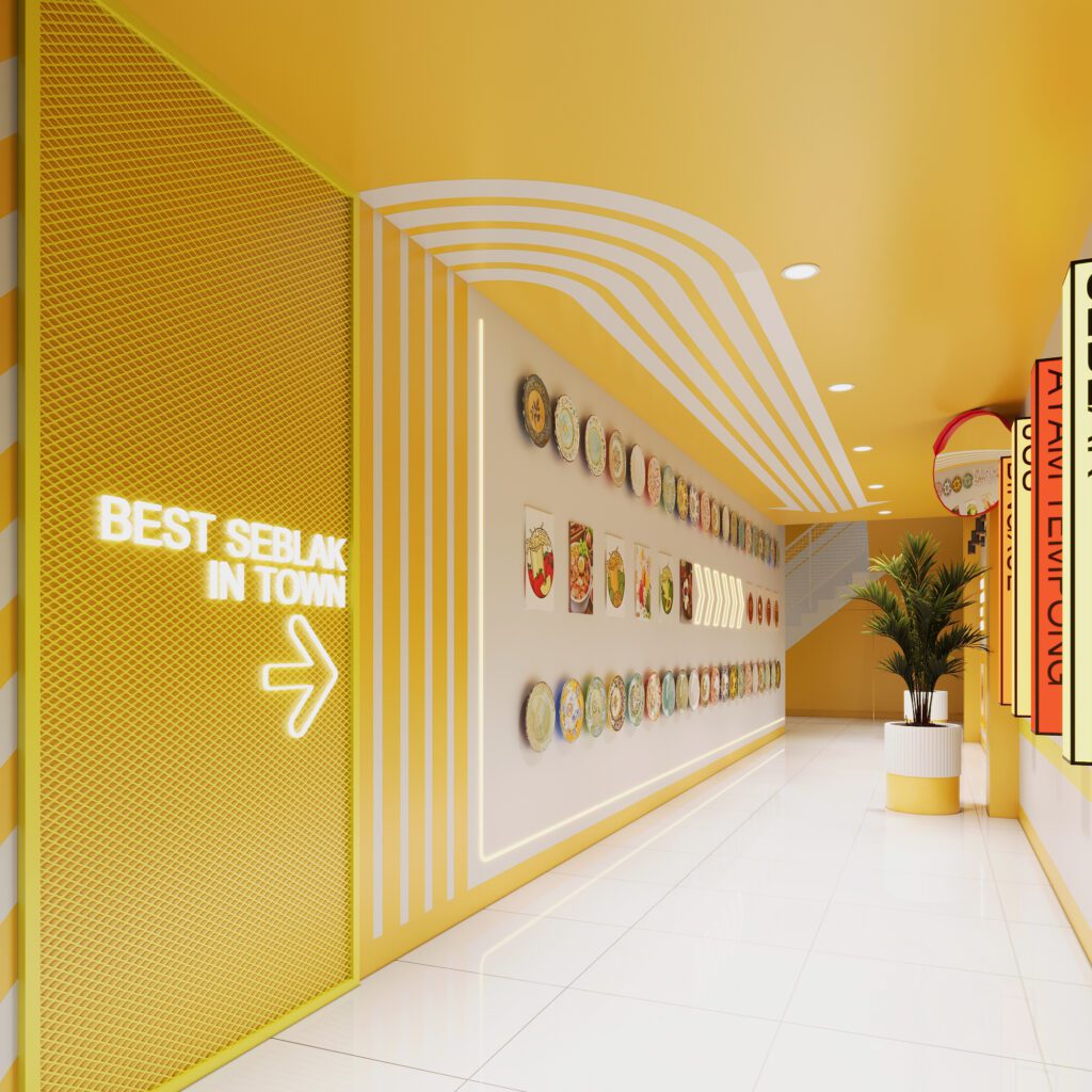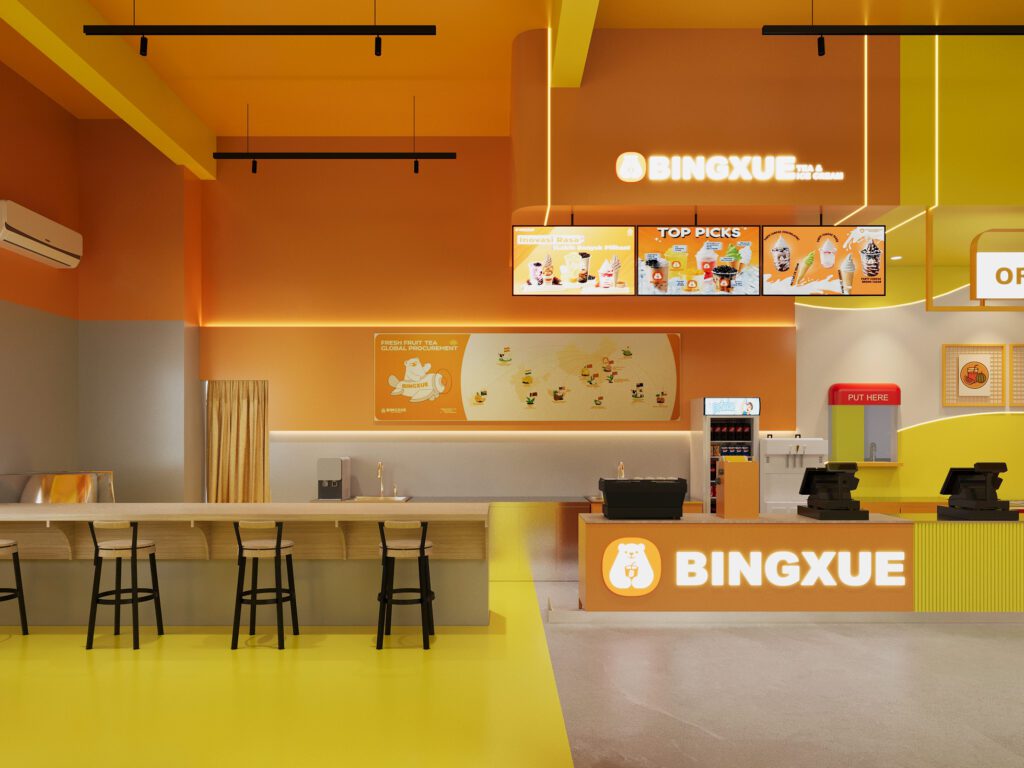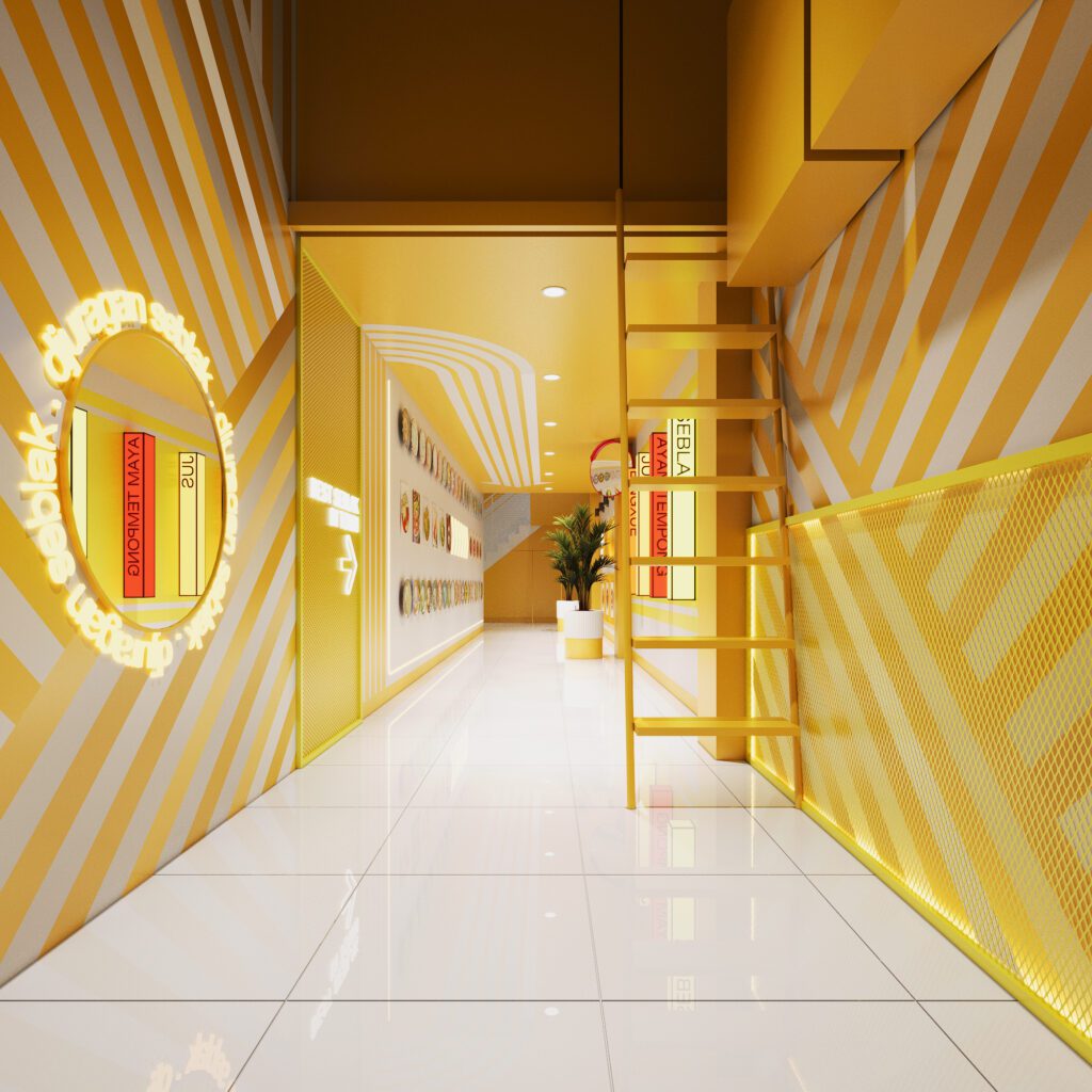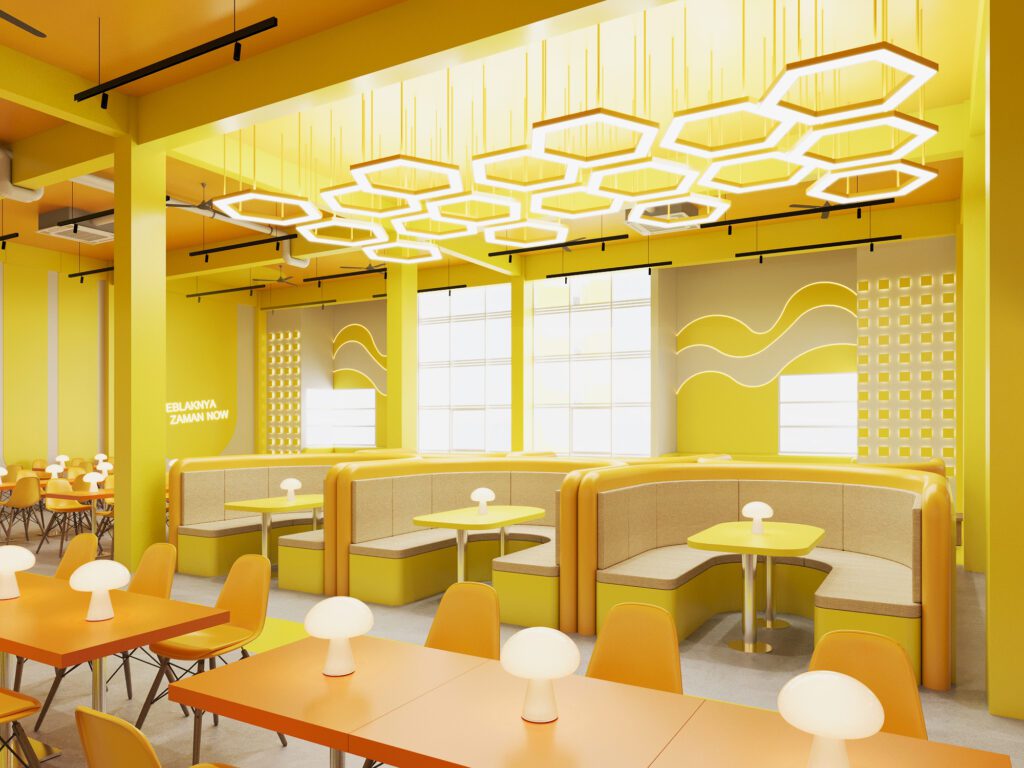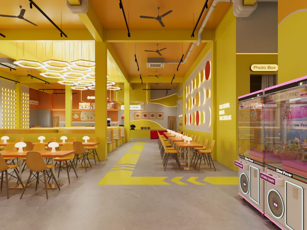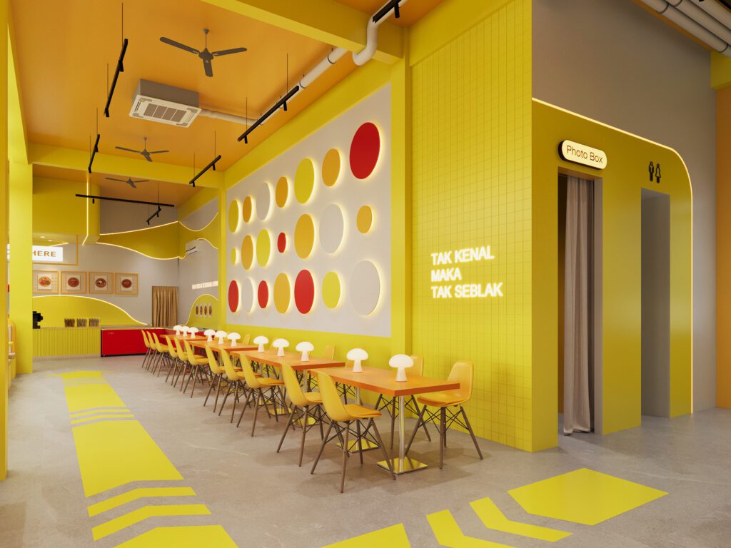 Bold, energetic, and full of personality, this branch showcases strong yellow tones and modern graphics. The design prioritizes clarity, with a straightforward order counter, spacious dining zones, and engaging wall visuals. The result is a vibrant, dynamic setting that reflects the brand’s youthful spirit.