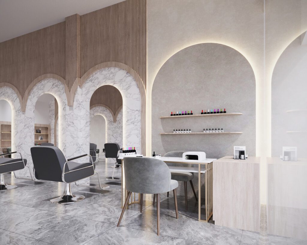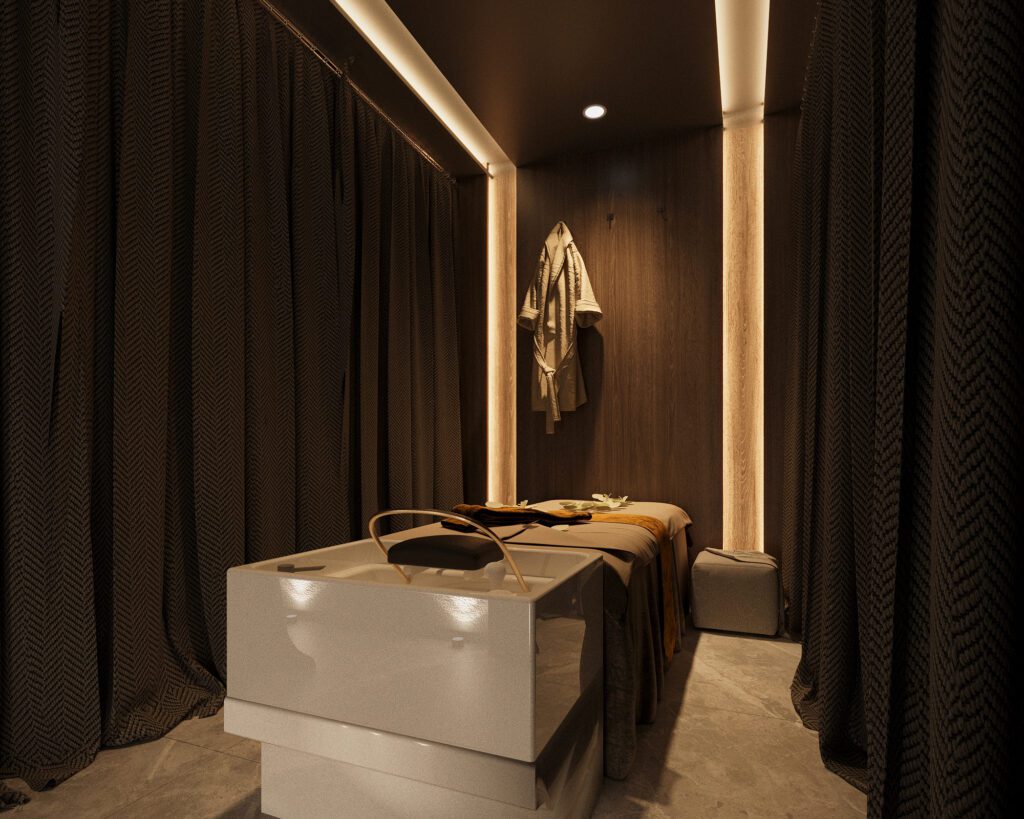The Graha Salon elevates beauty treatments into a lifestyle experience. Natural tones and curated lighting establish an atmosphere of comfort and relaxation, while refined furnishings add a touch of elegance. The design enhances both function and ambiance, giving clients a space where they feel pampered and at ease.